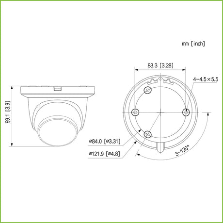 Precio normal 114,07 €Precio unitario /AgotadoDomo IP H265 4M QHD DN WDR 3DNR Starlight IVS IR30m 3.6mm IK10 IP67 PoE SD
