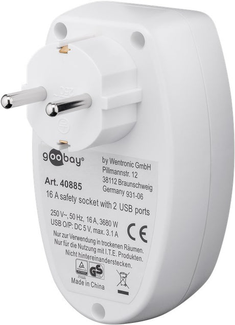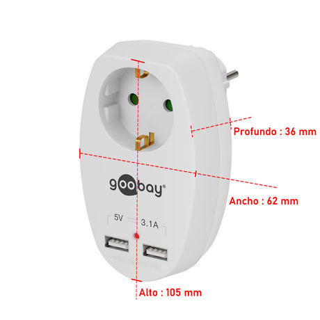 - Enchufe de Seguridad 16A con dos Puertos USB (Tipo A) 3.1A Precio normal 10,94 €Precio unitario /Agotado