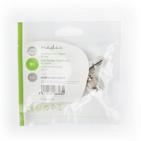 Precio normal 2,52 €Precio unitario /AgotadoConector IEC (Coaxial) | Macho + Hembra - En Ángulo 2 Unidades Blanco