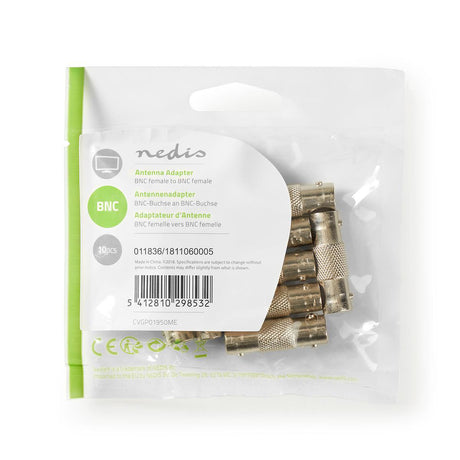 Precio normal 39,99 €Precio unitario /AgotadoAdaptador de Antena | BNC Macho - RCA Hembra 10 Unidades Metal