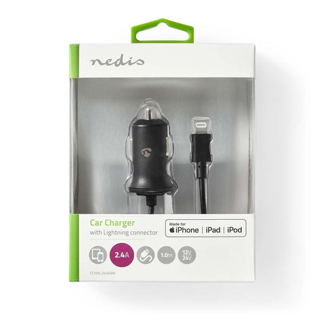 - AgotadoCargador Para Coche | 2,4 A Cable Fijo Conector Lightning de Apple Negro Precio normal 14,85 €Precio unitario /Agotado
