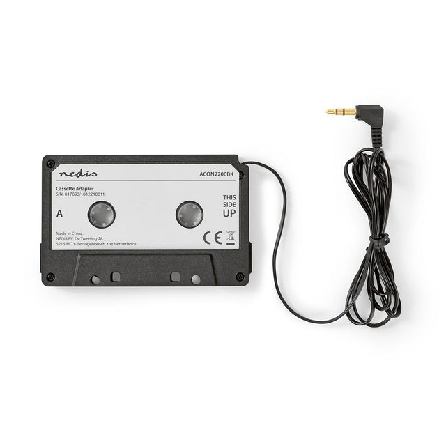 Disfrute escuchando sus pistas de música favoritas a través de la radio del coche con este adaptador para cintas de Nedis®. Conecta fácilmente los dispositivos con una conexión para auriculares de 3,5 mm, como el teléfono móvil o el reproductor de MP3, y produce un sonido de gran calidad. Lo único que tiene que hacer es conectar el cable del adaptador a la conexión para auriculares de 3,5 mm del dispositivo e introducir la cinta en el reproductor de cintas. Nota: El reproductor de cintas debe contar con acceso libre.