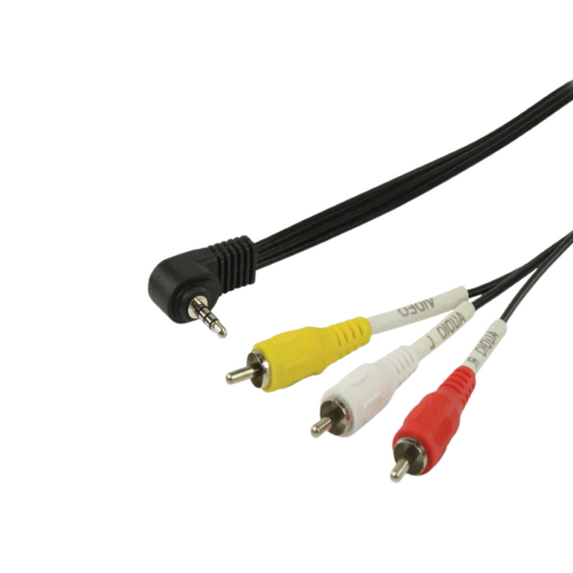 Cable MiniJack de 3.5 mm MACHO (4 conectores) a 3xRCA Macho de 2 m. Sirve para pasar audio y video desde una camara AV o una capturadora de video analogica.