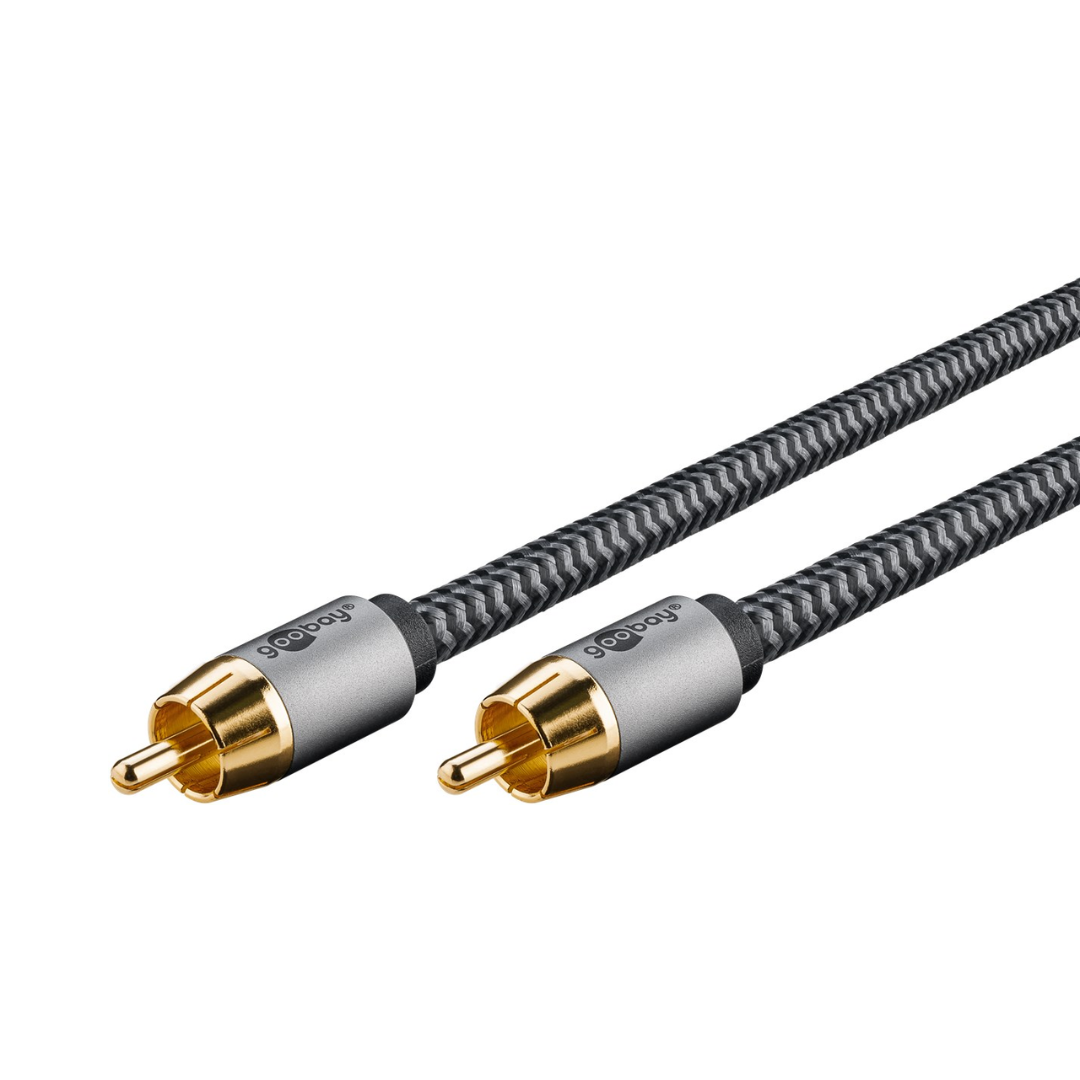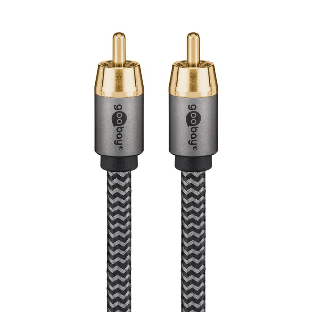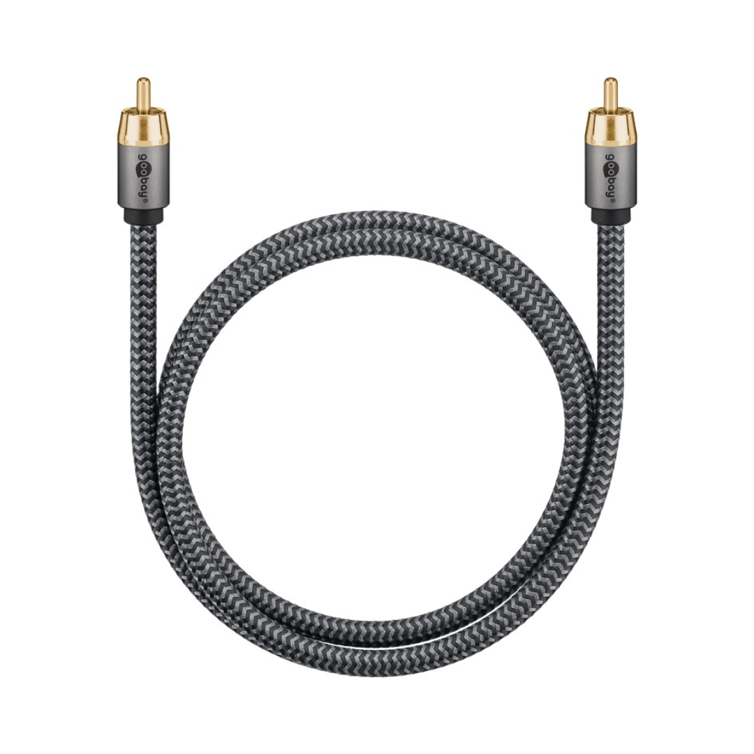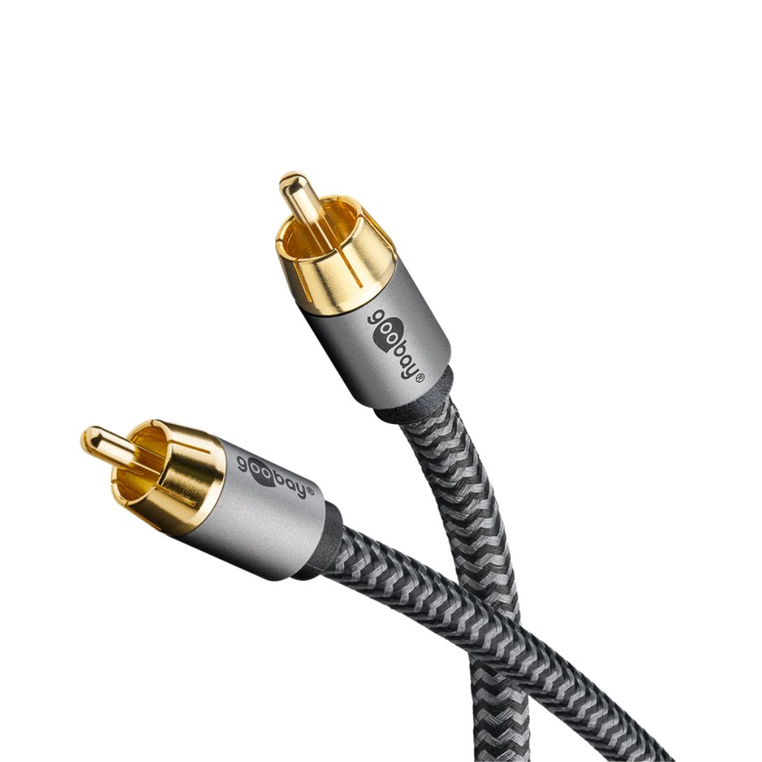 - Cabo RCA mono para ligar equipamentos de alta fidelidade, como um subwoofer, a recetores, amplificadores, televisores e sistemas de cinema em casa com ligações RCA.